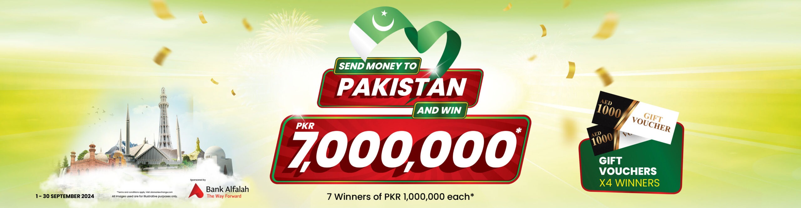 Do not miss out on this incredible opportunity! Make your money transfer to Pakistan today and unlock the chance to win big with Al Ansari Exchange.