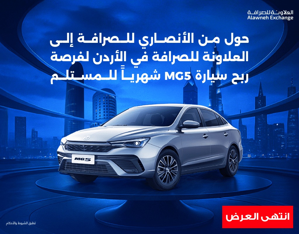 أرسل الأموال من الأنصاري للصرافة إلى العلاونة للصرافة في الأردن لفرصة لربح سيارة MG5 شهرياً