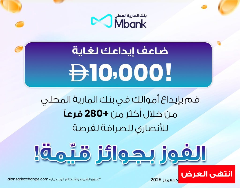 ضاعف إيداعك إلى 10,000 درهم في بنك المارية المحلي!