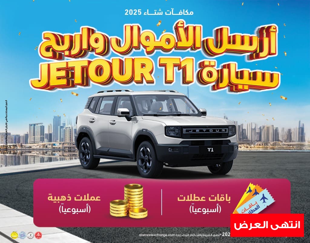 أرسل الأموال من خلال الأنصاري للصرافة، واحصل على فرصة لربح سيارة Jetour T1