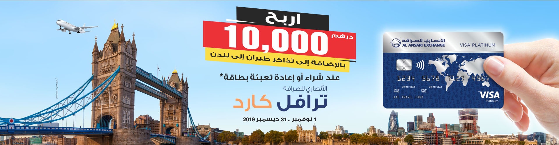 اربح 10,000 درهم و4 تذاكر طيران إلى لندن مع بطاقة الأنصاري للصرافة ترافل كارد!