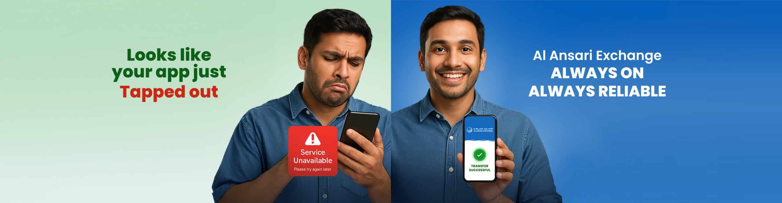 Enjoy 6 Zero-Fee money transfers now on the Al Ansari Exchange App, plus an additional reward of AED 100 on your 6th transfer invoice