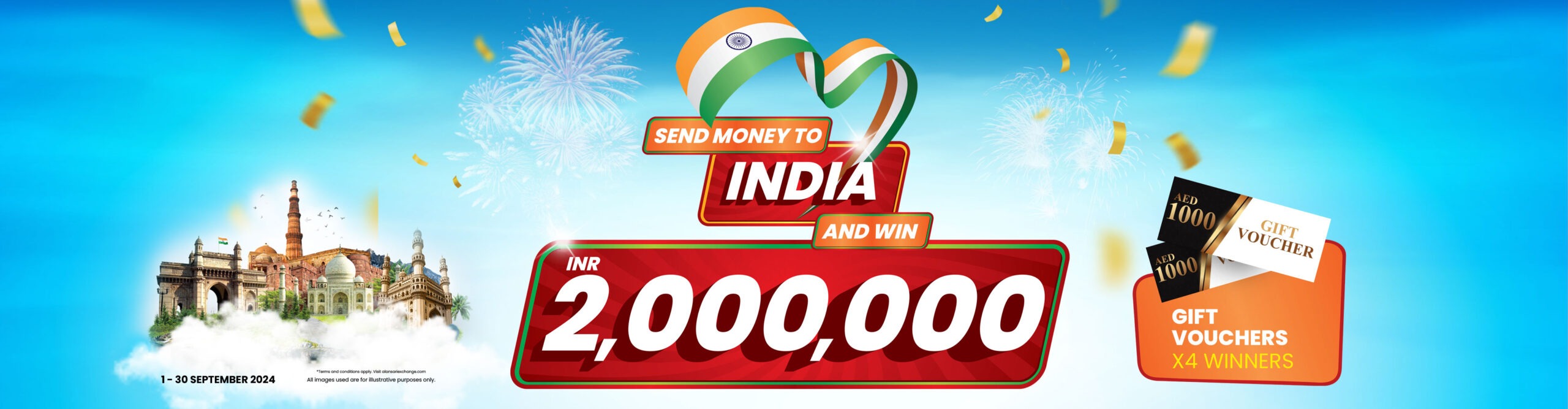Send money to your loved ones in India through our app or our branches and you could be the winner of 2 Million Indian Rupees!
