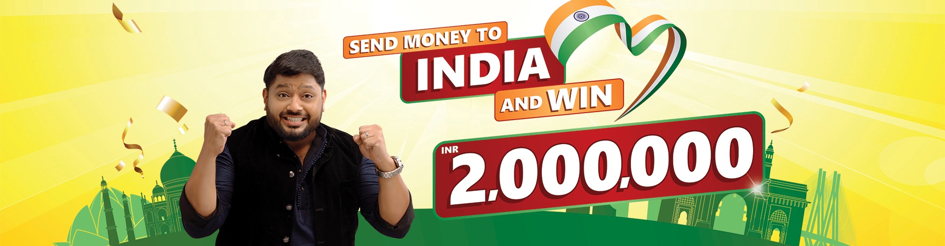 Transfer money to your loved ones in India using the Al Ansari Exchange app or branches and stand a chance to win up to ₹ 2,000,000 in cash and 8 grams of gold coins
