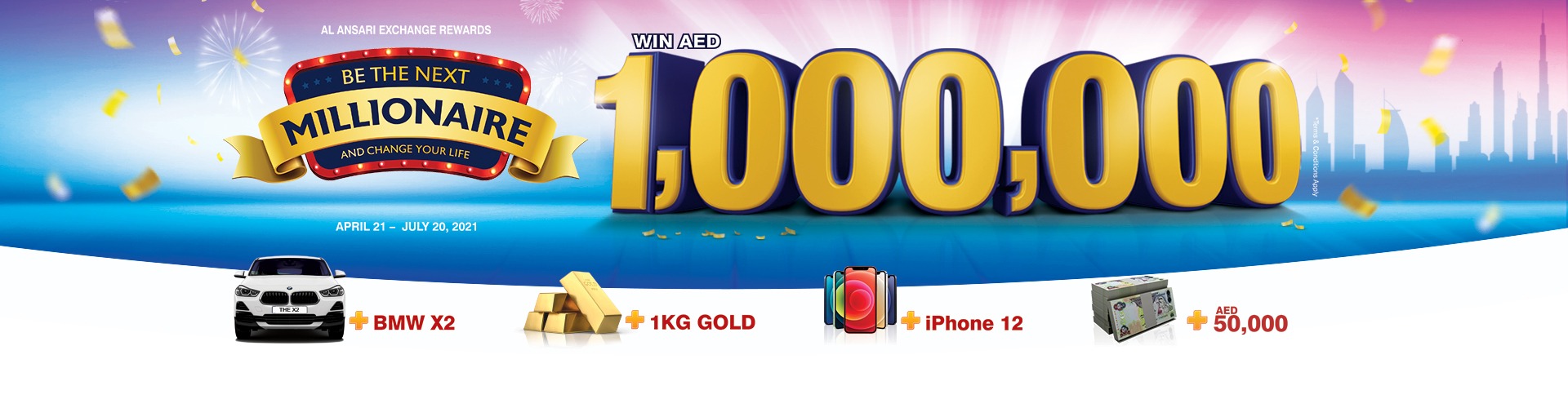 - AED 1,000,000, iPhone 12 & AED 10,000 draws: To enter the draws, send money through the Al Ansari Exchange Mobile App or branches across the UAE or make any qualifying transaction.